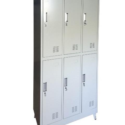 Guardarropas locker 6 puertas medianas para candado y patas con regatones.