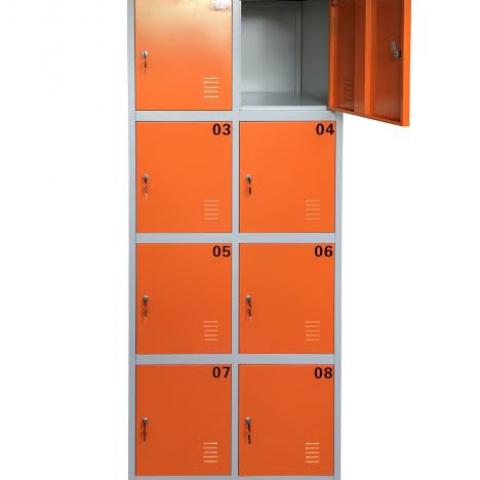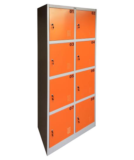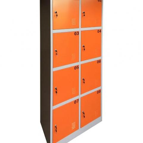 Guardabultos 8 puertas, ideal para personal o comercio. Con llave numerada, pintura electroestatica color naranjo.