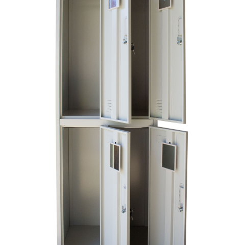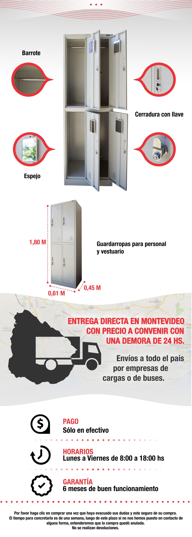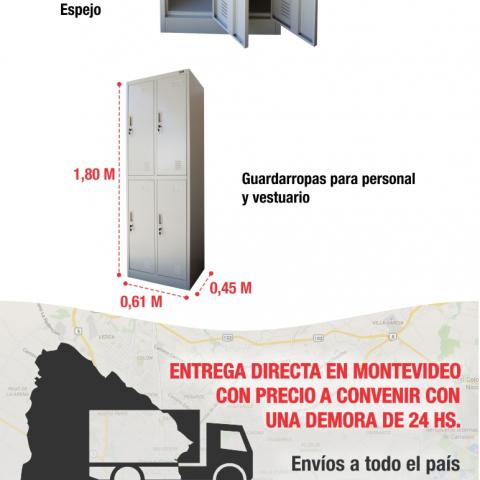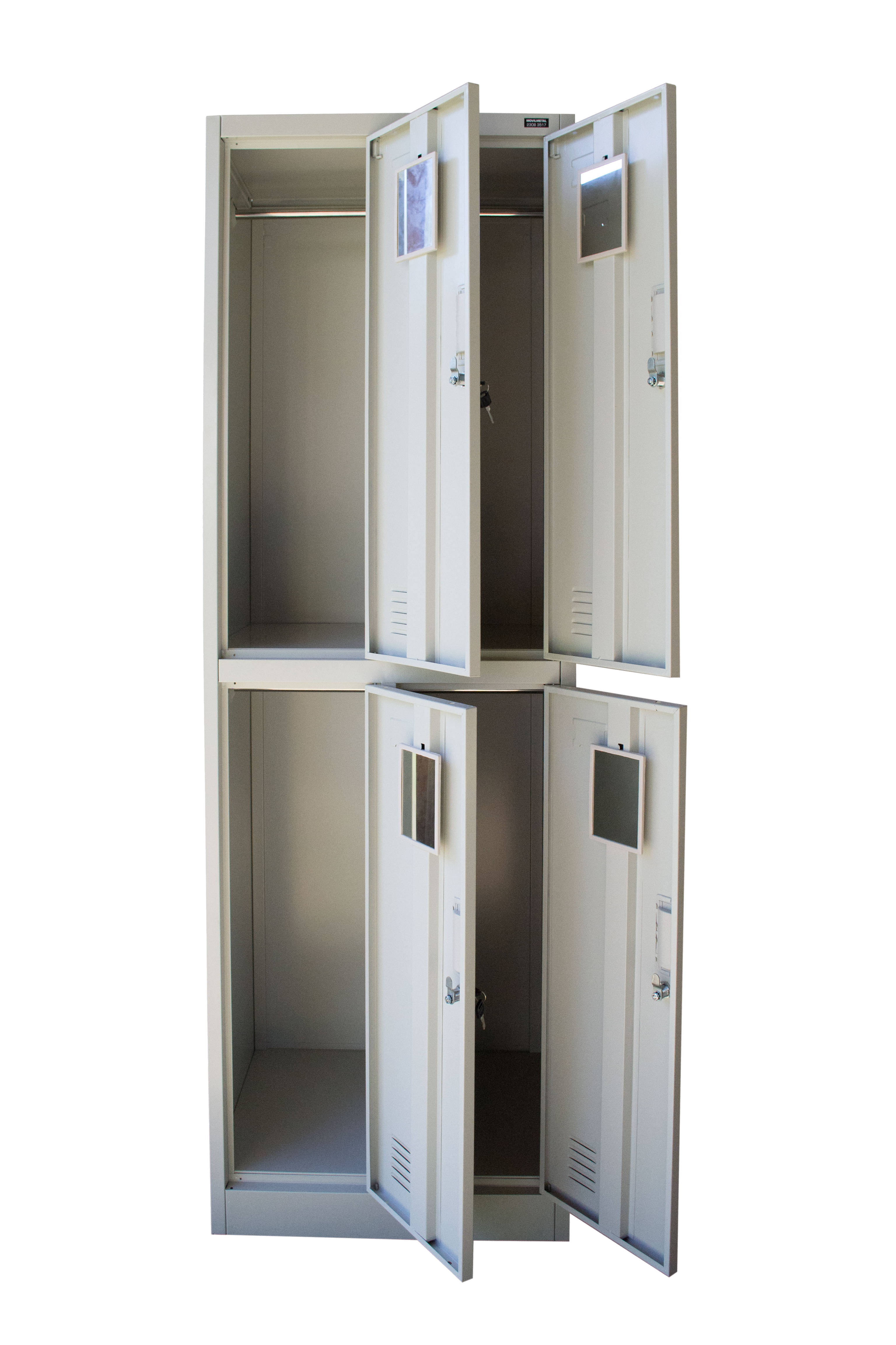 Guardarropas locker con 4 puertas ideal para vestuario e industria cerradura para candado, perchero y espejo porta nombre, manija plastica.